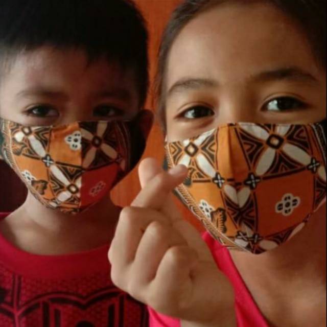 Ready Masker kain batik 3 lapis dengan karet elastis ( lebih nyaman di pakai ).