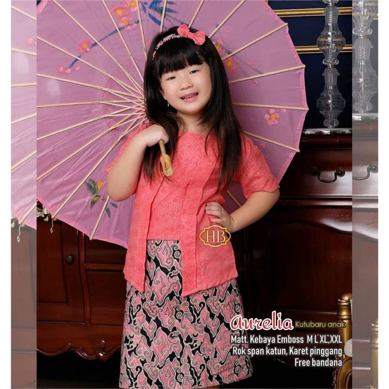 Name: Aurelia Kebaya Kutubaru Batik Anak Cewek Premium Lengan Rok Pendek Peach Orange Oren Salem Pink