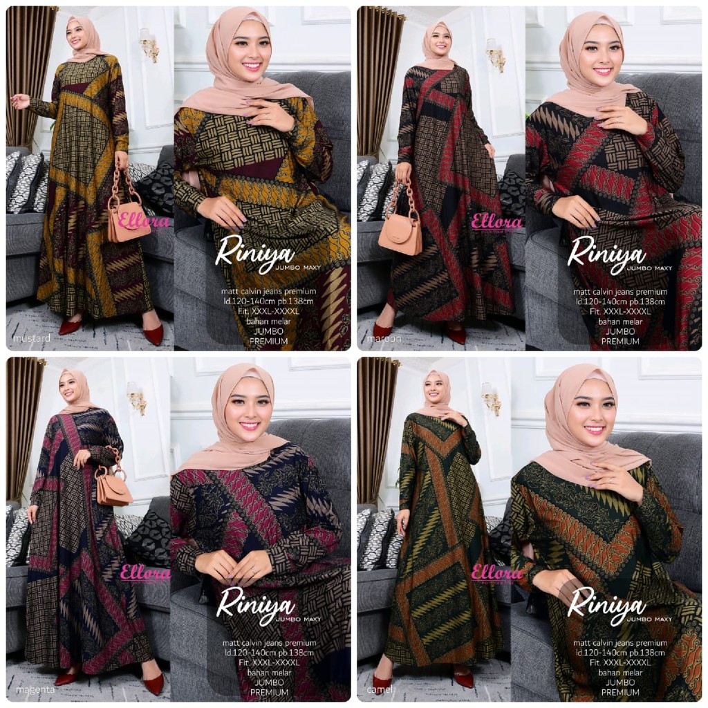 Name: Riniya Gamis Terubaru Bahan Calvin Jeans Ld 120 Melar Sampe 140 Gamis Jumbo Motif Batik Cantik