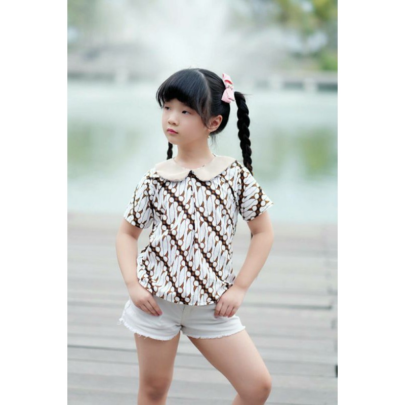 Name: Blus Batik Anak Sekolah Atasan Batik Anak Putih Coklat Cantik Usia 4-12 Tahun Bahan Katun Halus