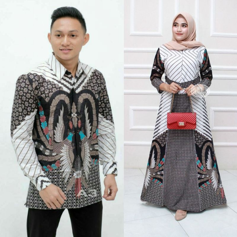 Pusat Grosir Fashion M di Kabupaten Nunukan Couple Gamis Jumbo Batik Putih Abu Ready Sampai Jumbo Ld 110 120 Busui Karet Belakang dari Batik Unjaz Kab. Pekalongan
