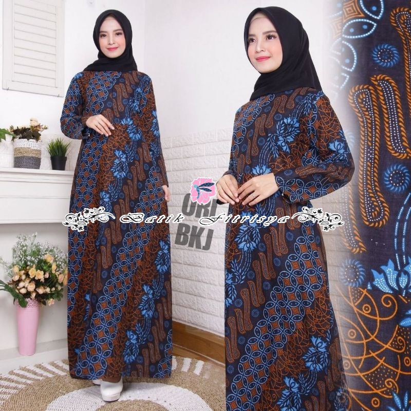 Best Seller Fashion M di Kabupaten Hulu Sungai Utara Batik Gamis - - - Dress Modern Pekalongan Seno Biru Ory Suffa dari Batik Pasangan Pria Wanita Kota Pekalongan